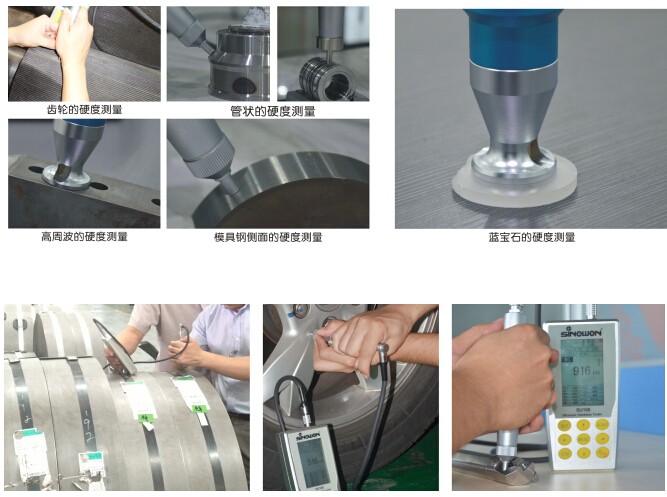 超聲波硬度計可測量法蘭盤邊緣和齒輪根部沖壓件、工模、薄板、表面硬化的齒和齒輪槽、錐度部分的硬度測量;以及軸和薄壁管道、容器的硬度測量;車輪、渦輪轉子的硬度測量;鉆頭的刀口和HAZ焊接部位的硬度測量;藍寶石的硬度測量能覆蓋工業生產中絕大部分的黑色金屬、有色金屬及其合金的硬度測量,是非常理想的硬度測試儀器。