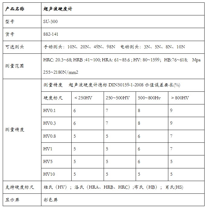 新研發成功的SU-300采用超聲波接觸阻抗法對試樣進行比較測量,不僅具備了國際主流品牌超聲波硬度計的測試壓痕小、測量時間快、測量精度高的特點,還創新使用了人體工程學流線型設計,采用高清晰的彩色液晶屏作為顯示終端,使得人機操作界面更加友好,更容易讓非專業人士上手操作。 一直致力于讓測量變得更加精準和簡單,公司通過ISO9001:2008認證。 超聲波硬度計采用國外技術,進口原件在中國進行組裝生產,隨機超聲波硬度計樣機已經通過中國權威檢測機構——中國計量科學研究院檢定,產品精度完全符合美標ASTM A1038-2005,歐標DIN50159-1-2008和中國行業標準JB/T9377-2010技術要求。