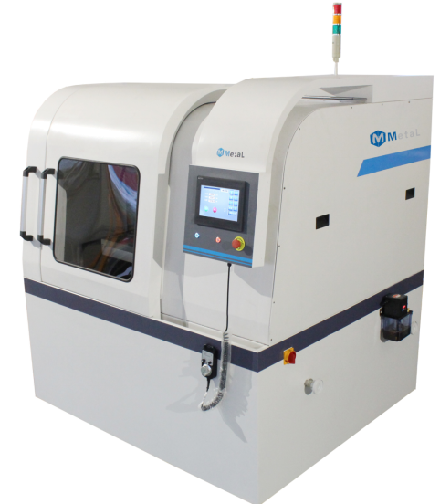 Metal-180大型切割機是一種PLC自動控制的金相試樣切割機,采用施耐德電氣和三菱軟件,X,Y,Z方向自動準確控制,切割速度變頻控制,具有非常高可靠性和控制能力,具有:(一)電子手輪、自動隨意轉換,(二)觸摸屏顯示各種切割數據,(三)準確定位,(四)砍式切割、平推連續切割、掃式切割三種功能切割方式,多樣切割方式能適應不同硬度材料,達到快速切割的目的。為了方便切割室清晰和主軸電機安全,我們采用了機、電分離;切割室安全防護罩上具有超大的觀察視窗,使使用者便于觀察樣品的切割全過程;切割室內安裝了LED照明燈,實現對整個切割室所用區域的有效照明;切割室內的換氣風可保證切割時產生的各種蒸汽和煙霧的高效流動排出,增加了工作室內明亮和清晰度;設計更人性化,運用了人機工程學原理。特點:噪音低,操作簡單方便,切割品質優,外形美觀,使用安全,是實驗室制樣必備設備之一。