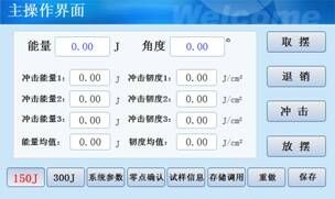半自動化:試驗時先手動取擺,完成后手動放料,然后進行退銷、沖擊。沖擊完畢,設備自動取擺。每次實驗完成后系統顯示區域將顯示沖擊能量及沖擊韌度。三次試驗為一組,一組完成后系統自動計算三次沖擊能量的平均值。
